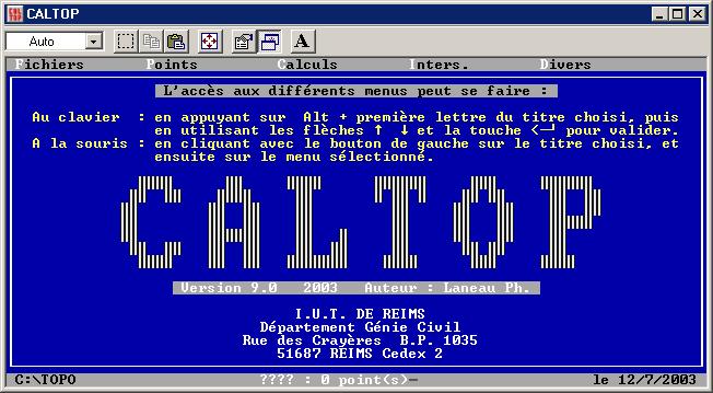 | Description | Logiciel développé par Philippe Laneau, enseignant à l’I.U.T. de Reims, il est idéal pour aborder de façon simple le calcul topométrique. N’utilisant que des