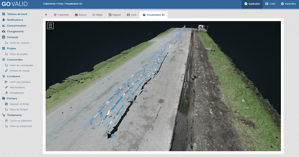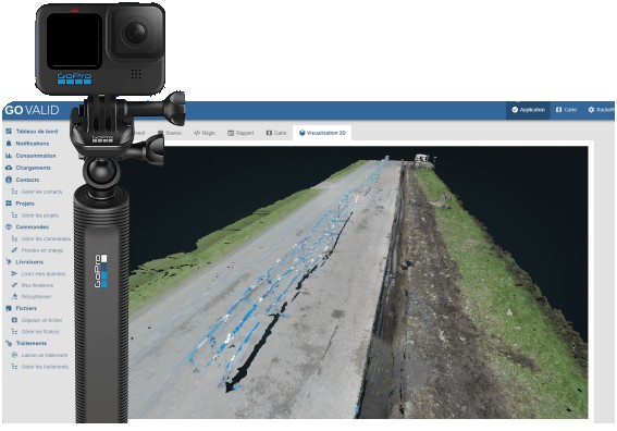Description | Mappia innove avec GO3D : une solution qui facilite l’acquisition de données topographiques grâce à une simple GoPro© et une perche télescopique. Depuis l’interface en ligne, transmettez vos photos brutes du chantier et les coordonnées de vos points de calage. Notre chaîne de traitement trie les clichés et effectue la corrélation des photos. Vous n’avez plus qu’à visualiser, contrôler et télécharger l’orthophoto (GeoTIFF) et le nuage de points 3D (LAS) de résultat. Les formats GeoTIFF et LAS sont exploitables dans vos outils de DAO, BIM et SIG. Notre plugin GOSUITE pour AutoCAD rend le dessin des plans encore plus efficace. |